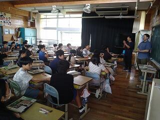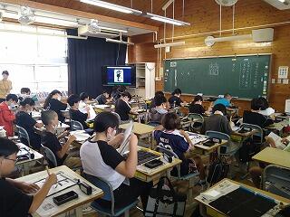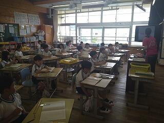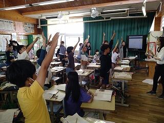 外国語ではALTの先生と担任の先生で授業を行っていました。ALTの先生に対して子ども達が多くの質問をしていました。