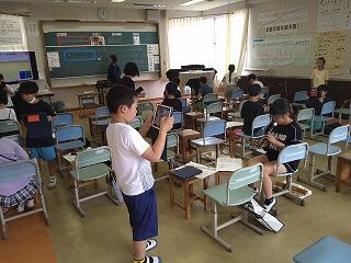 4年生はタブレットを使って、リコーダーの演奏を録画していました。