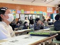 本日の4年生です。図工では、この1年間で心に残った出来事を絵に表しています。社会科では、口蹄疫の出来事を学習しています。