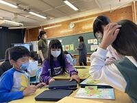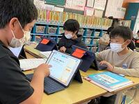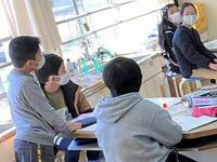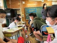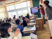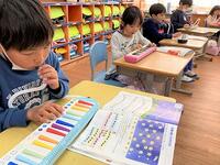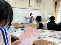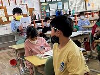 本日の5年生です。国語では、新出漢字の学習です。算数では、割合の表し方の復習です。外国語科では、ALTと一緒に、ものがどこにあるのかの受け答えを学んでいます。