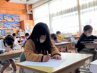 本日の2年生は、2学期を振り返っての作文を発表しています。4年生の算数では、学期末の振り返りプリントをしています。5年生の国語では、2学期振り返りのテストに集中です。