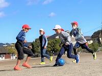 本日の2年生の算数「分数」では、もとの大きさの半分の半分の大きさについて、調べています。5年生の「体育」では、作戦を工夫しながら、サッカーを楽しんでいます。