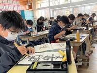 本日の6年生です。家庭科では、栄養バランスのよい献立を考え、実習をしています。国語では、点画のバランスを考えて習字に取り組んでいます。