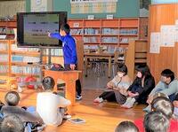 本日の5年生の国語では、手塚治虫の人物像を話し合っています。算数では、速さの問題に取り組んでいます。お昼休みの体育館では、1年生が「なわとび検定」にチャレンジしています。検定員は、体育委員会の子どもたちです。