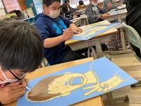 本日の4年生の図工です。木版画の仕上げに入っています。刷り上がった作品を見ると、大きな喜びを感じることでしょう。