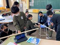 本日は雪まじりの寒い天気です。6年生の体育では、「開脚後転」にチャレンジです。理科では、「てこ」を利用した道具の仕組みを考えています。