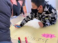 本日の1年生です。生活科では、「昔の遊び」にふれて、うまくできるように取り組んでいます。国語では、カタカナの復習です。空中に書いて確かめています。