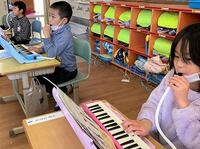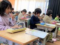 本日の1年生の音楽です。「鍵盤ハーモニカ」で、音の長さを工夫して演奏しています。