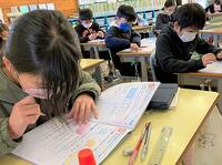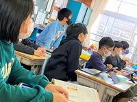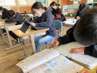 本日の6年生の国語では、教材文から考えを広げて、自分たちの町づくりに関する提案プレゼンテーションに向けての準備です。家庭科では、単元末のテストに集中です。