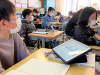 本日の4年生の国語では、タブレットの機能を使って作成したアンケートで、お友達の答えを集計し、分かったことを報告しようとしています。また、音楽では、鑑賞曲のききどころを見つけて、紹介文を作っています。3年生の道徳の授業では、たくさんの先生方が参観しました。