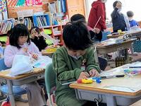 本日の1年生です。図工では、どんぐりを使った工作に取り組んでいます。また、朝のボランティアで、6年生と一緒に「あいさつ運動」に参加したお友達もいました。
