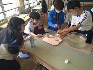 ものの燃え方と空気の関係について実験しながら調べていました。