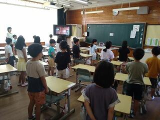 始業式は、まだまだ暑いということもあり、オンラインで行いました。