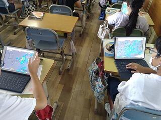さて、5年生の理科の時間に、台風10号の進路や大きさについて調べていました。