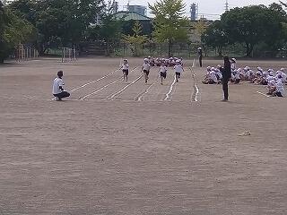 そんな中、1年生が運動場で徒走の練習をしていました。