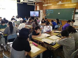 職員同士で授業を見合い、意見を言い合うことで授業力をあげることを目的にしています。
