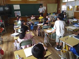 2年生の教室をのぞくと、お楽しみ会で「フルーツバスケット」をしており、大盛り上がりでした。