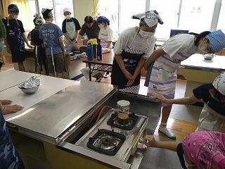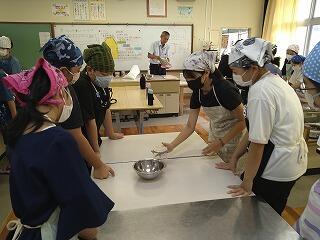 6年生が家庭科の時間にポップコーン作りをしていました。