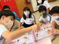 本日の朝の活動では、6年生が1年生に「読み聞かせ」を行っています。