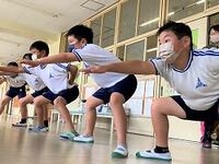 本日の4年生の体育です。運動会に向け、団分けの50m走やソーラン節の練習が始まっています。