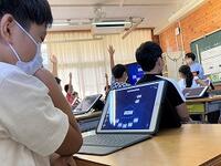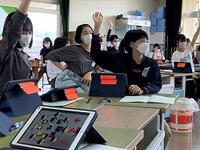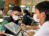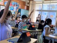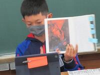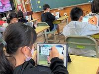 本日の4年生の算数では、複合図形の面積を求めています。タブレットを使いながら、自分の求め方をグループで交流しています。社会科では、調べ学習に集中です。