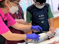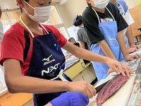 本日の5年生は、総合的な学習の時間「We Love 日南」のテーマのもと、カツオ丸ごと1匹をさばいたり、おろしたりしました。