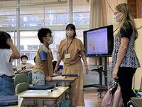 本日の4年生の外国語活動では、筆箱やかばんの中にもっているものをたずね合っています。