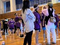 本日の6年生は、運動会で披露する「泰平踊」の衣装を保護者とともに着付けをしました。そして、運動場でリハーサルです。