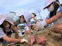 本日の2年生の生活科は、サツマイモの収穫です。5月に植え付けてから、とても大きく育ちました。