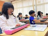本日の1年生の音楽では、歌やけんばんハーモニカの音を感じ取っています。