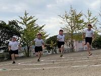 本日の4年生の体育です。徒競走やリレーの練習に全力です。