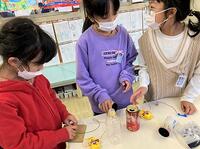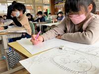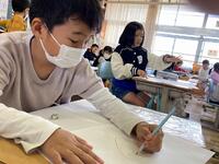 本日の3年生です。図工では、窓を開いて、その向こうに広がる不思議な世界を創造しています。算数では、ふきごまをつくって、回した時の様子を見ています。