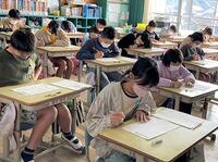 本日の5年生は、「みやざき学習状況調査」の問題(国語・算数)に取り組んでいます。