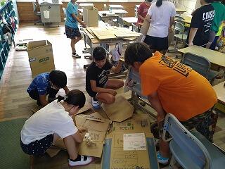 段ボールを使って、建物を作っています。