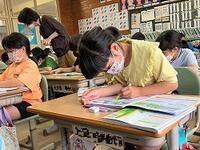 本日の5年生です。文字の組み立て方を考えて毛筆をしたり、音のはたらきを感じ取ったり、地域における気候の違いを調べたりと、しっかりと学習を進めています。