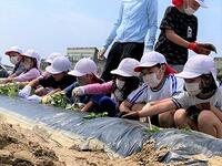 本日の2年生の生活科では、さつまいもの苗を植えました。これからお世話をして、大きく育てます。