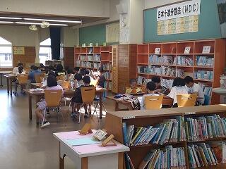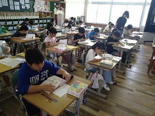 4年生が図書室で本の貸し出しをした後に読書をしていました。