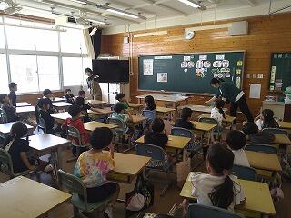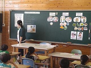 外国語ではALTの先生と担任の先生で授業を行っていました。ALTの先生に対して子ども達が多くの質問をしていました。