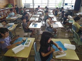 ペン立ての作り方も丁寧に教えていただき、すばらしい作品ができあがりました。