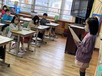 本日の2年生の国語です。声に出して読む練習をしています。また、漢字の小テストに集中しています。4年生の理科では、もののあたたまり方の実験結果から、分かったことを話し合っています。