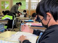 本日の2年生は、2学期を振り返っての作文を発表しています。4年生の算数では、学期末の振り返りプリントをしています。5年生の国語では、2学期振り返りのテストに集中です。