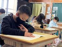 本日の4年生の図工です。木版画の仕上げに入っています。刷り上がった作品を見ると、大きな喜びを感じることでしょう。