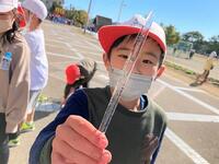 本日の1年生です。生活科では、「昔の遊び」にふれて、うまくできるように取り組んでいます。国語では、カタカナの復習です。空中に書いて確かめています。