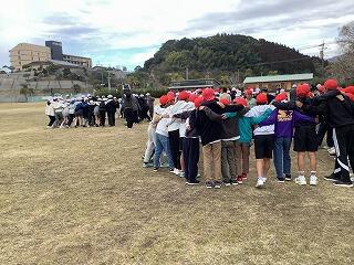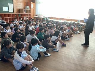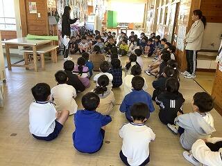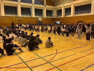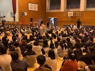 まずはじめに体育館で6年生とのお別れ集会を行いました。
