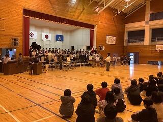 在校生からメッセージを渡したり、6年生がお返しに「栄光の架け橋」の演奏をしたりしました。
