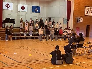 本年度最後の活動で、保護者や在校生が見守る中、すばらしい歌声を響かせていました。