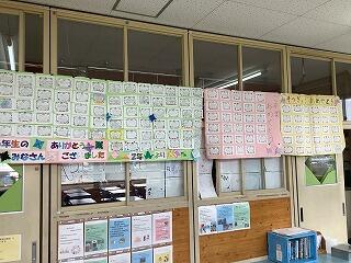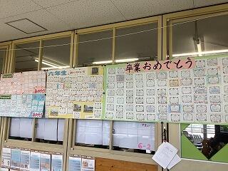 先日のお別れ集会で送られた、各学年の卒業お祝いメッセージが廊下に掲示してありました。