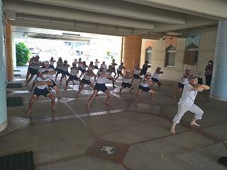 団長、副団長、リーダーのみんながひっぱりながら、大きな声で応援練習をしていました。