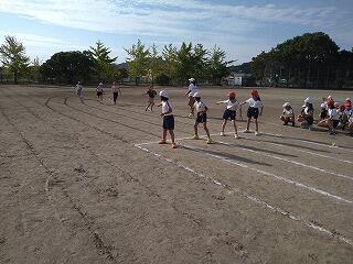 そんな中、1年生が運動場で徒走の練習をしていました。