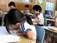本日の1年生の算数は、「なんじなんぷん」といった時計の読み方を学んでいます。6年生の算数では、メモから外国と日本のODAの金額を比べています。